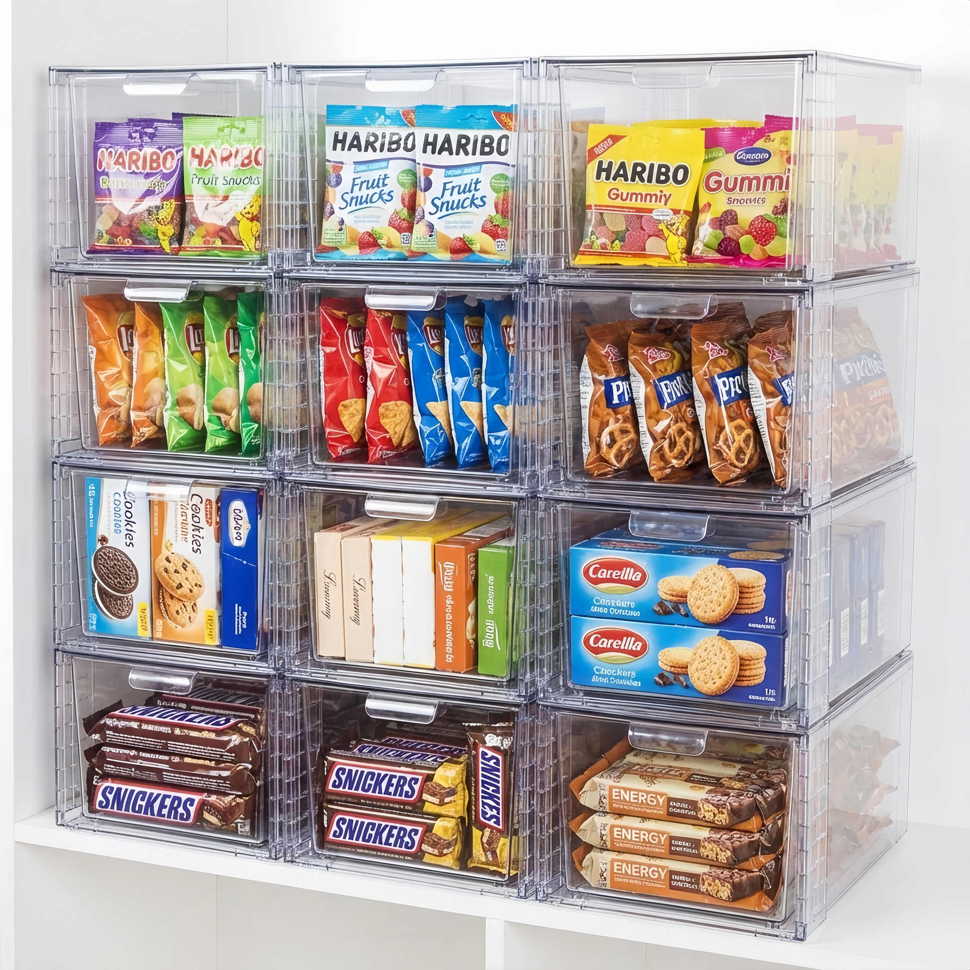 "Maximize your vertical space and eliminate clutter instantly. These crystal-clear, stackable drawers let you see exactly what you have and access it effortlessly. Perfect for organizing snacks, cosmetics, office supplies, and more."